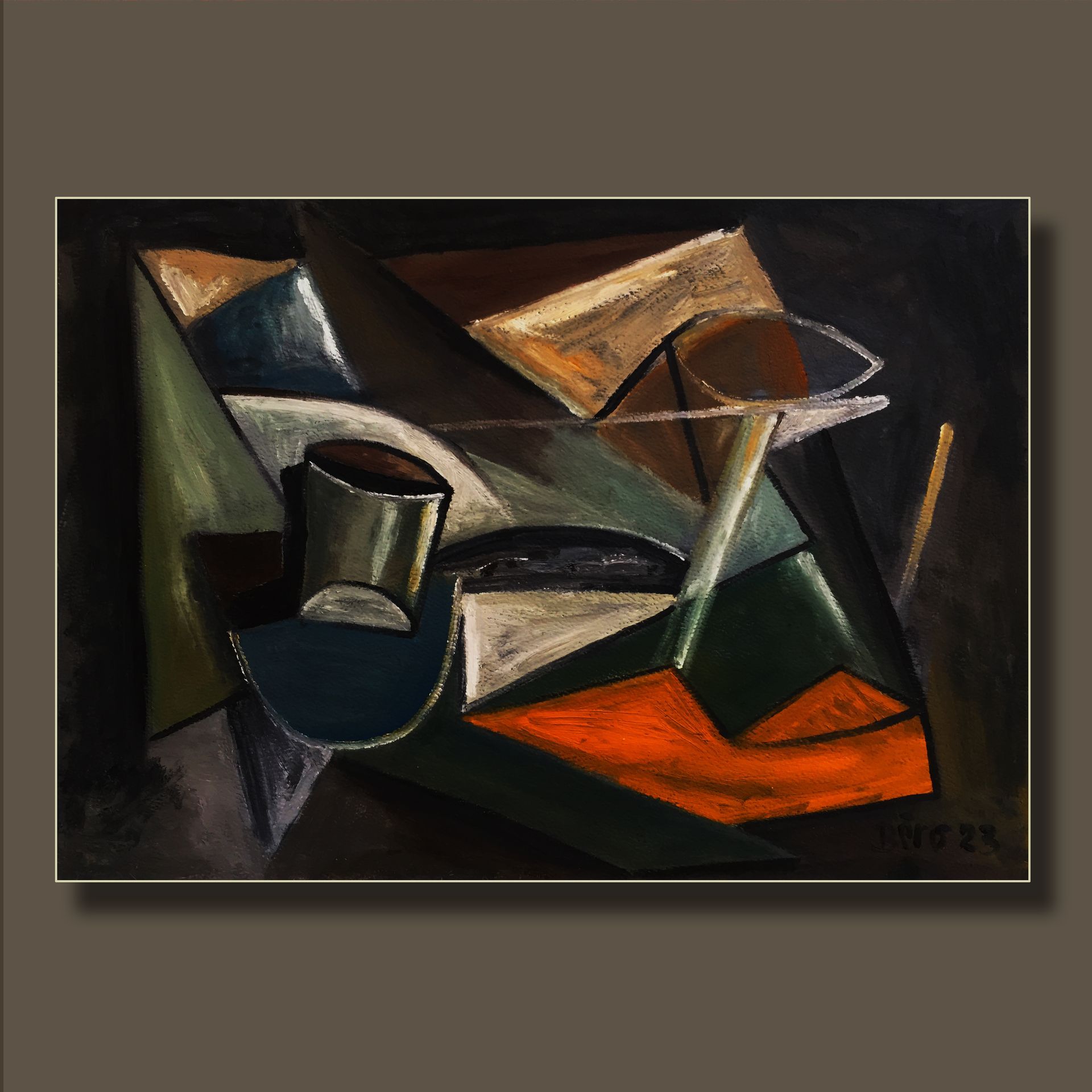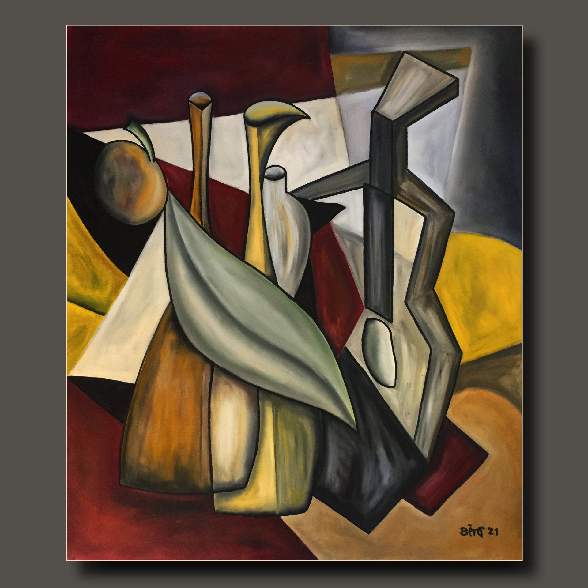 Alain Beraud, a French artist has a long and impassioned career dedicated to photography, painting, and filmmaking. His current suite of neo-Cubist paintings is greatly influenced by 20th century Cubism, and takes the quotidian moments of being eating, bathing, reflecting into new dimensions and perspectives. His canvases suggest moods and stories, encouraging the viewer to travel beyond thoughts into the sensory.