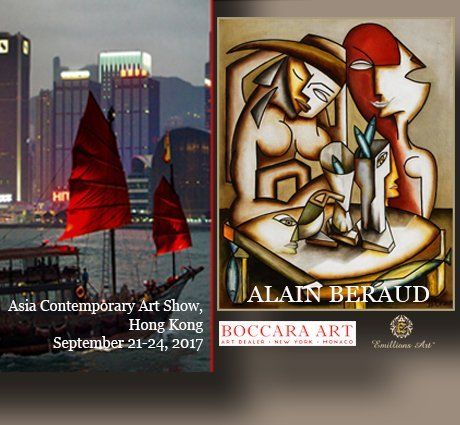 Fresh off a Monaco debut, Alain Beraud’s work travels to Hong Kong as part of the 11th edition of the Asia Contemporary Art Show, September 21 – 24 at the Conrad Hong Kong. Presented by Emillions’ partner, Boccara Art, Beraud’s canvases reflect a modern take on a 100-year old art genre that ushered in the 20th century’s premier art movement: abstract art. Beraud continues in that vein with his play on perspective, dimension and a wry outlook on ordinary scenes rendered transcendent.